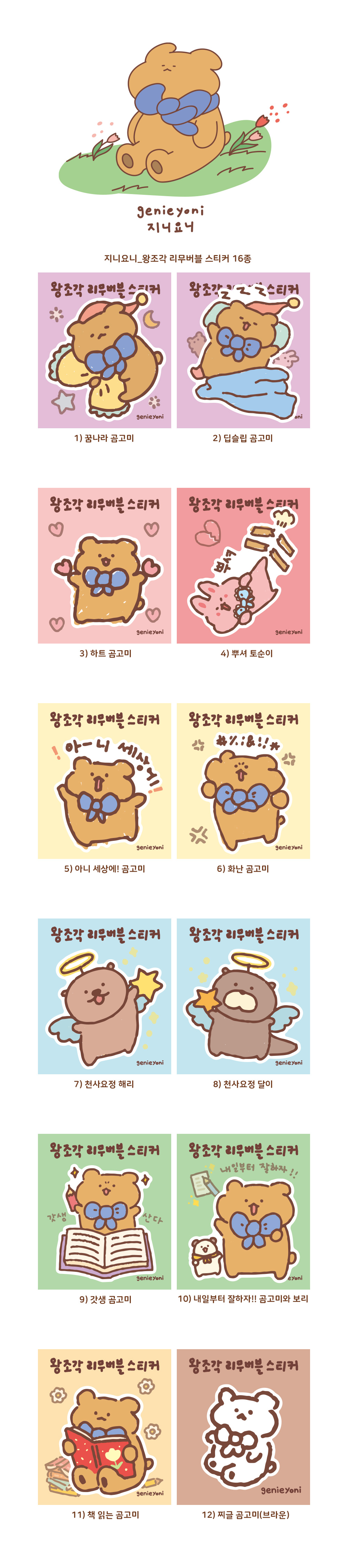 지니요니 왕조각 리무버블 스티커 16종