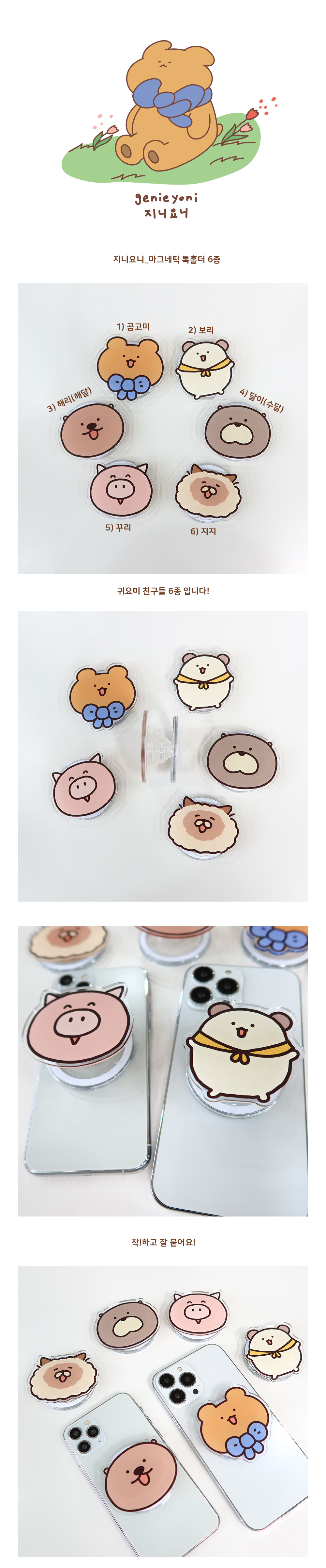지니요니 캐릭터 마그네틱 톡홀더 6종