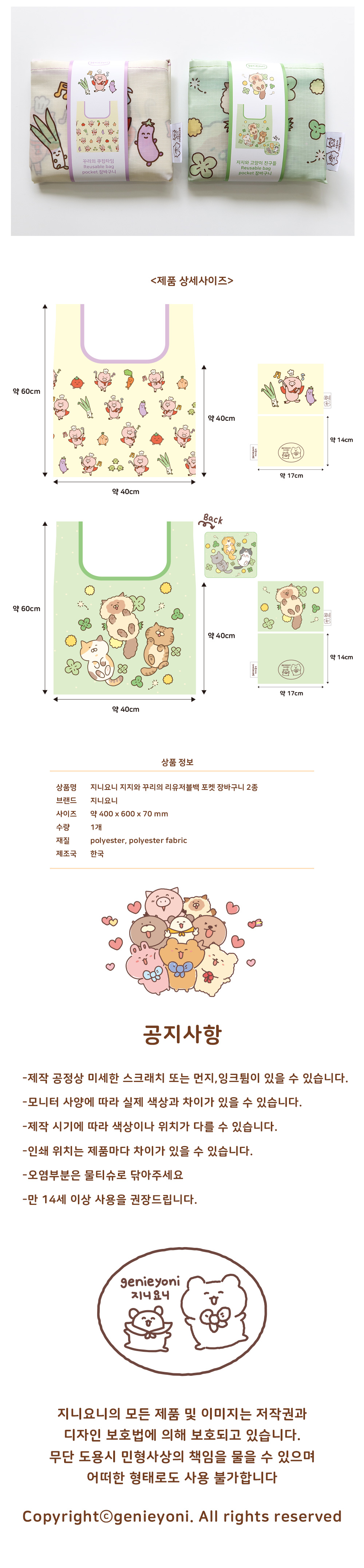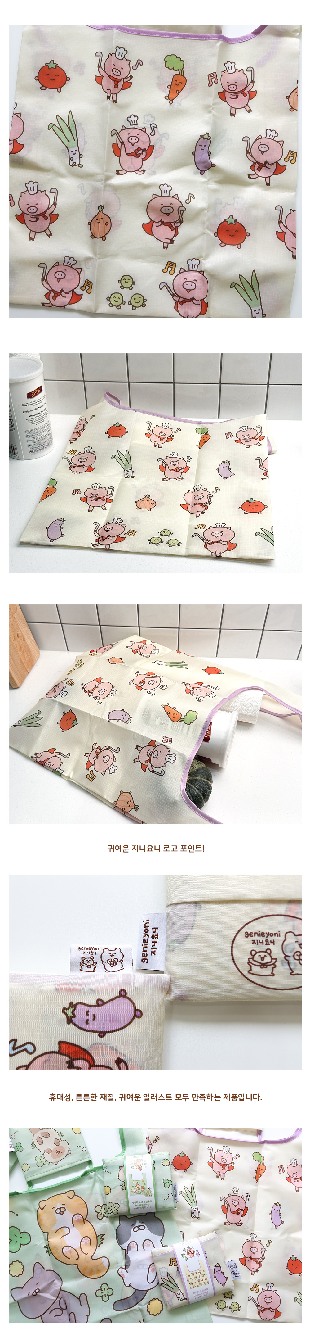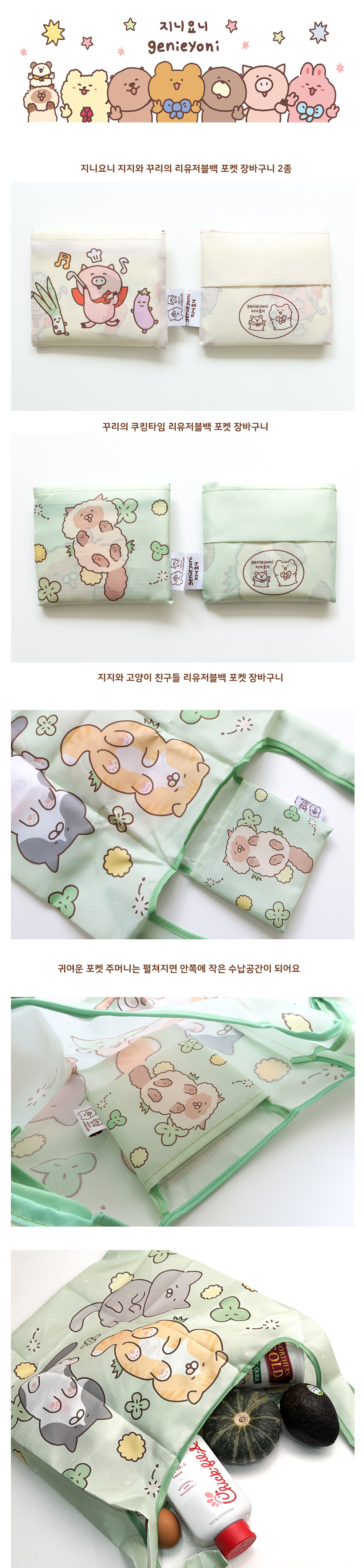 지지와 꾸리의 리유저블백 포켓 장바구니 2종